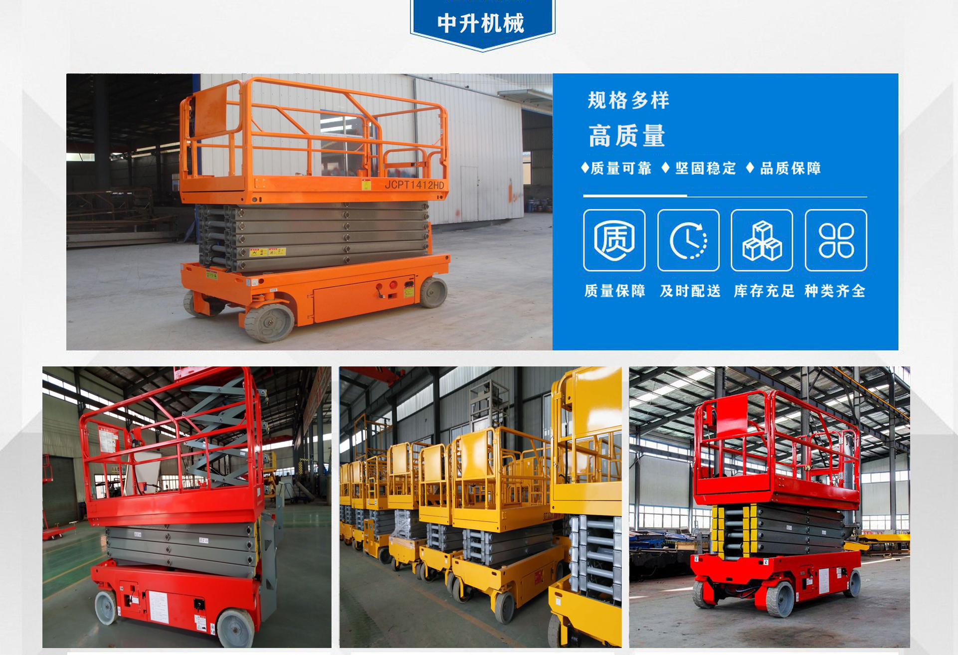 濟南中升機械制造有限公司主營自行式升降機,自行走升降機,自行式升降平臺,移動升降平臺,移動式升降平臺等產(chǎn)品,產(chǎn)品廣泛用于廠房維護、工業(yè)安裝、設(shè)備檢修、物業(yè)管理、倉庫、航空、機場、港口、車站、加油站、體育場、展覽館等多種行業(yè)和場所,  公司設(shè)備精良、工藝合理、檢測手段齊全,技術(shù)力量充足,公司創(chuàng)立伊始即本著“專注、專心”的經(jīng)營理念,依托技術(shù)團隊優(yōu)勢和設(shè)備硬件保障,全力打造良心的升降平臺企業(yè)。  我公司始終以“品質(zhì)為本,服務(wù)至上”作為企業(yè)宗旨。只要你訂購了我公司的產(chǎn)品,無論你身處何方,我們都會及時派出技術(shù)人員為你服務(wù)!...